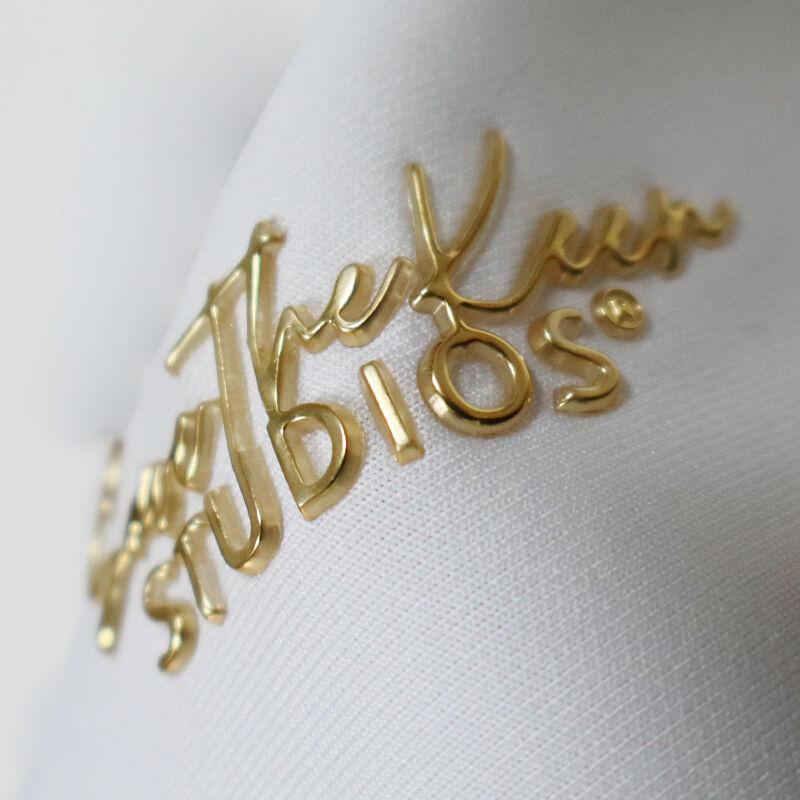 Logotipo de transferência de calor 3D em relevo em ouro TPU personalizado para vestuário
